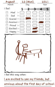 The content for the How Mad I Am! Read- and Draw-Along book was created over multiple encounters with our youngster who found it frustrating to communicate effectively with words. He had resorted to biting and tantrums to get what he needed (and wanted).